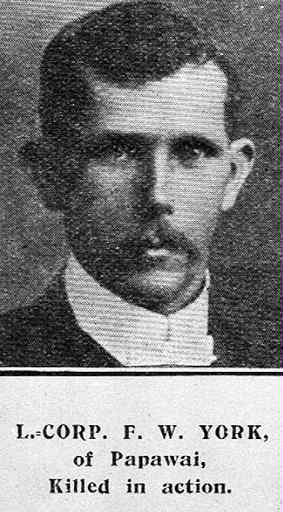 Frank York was born in Nelson, New Zealand, on 2 October 1871. He was one of 10 children of George and Sarah York and his family moved to Greytown in the Wairarapa district, North Island in the 1880s.